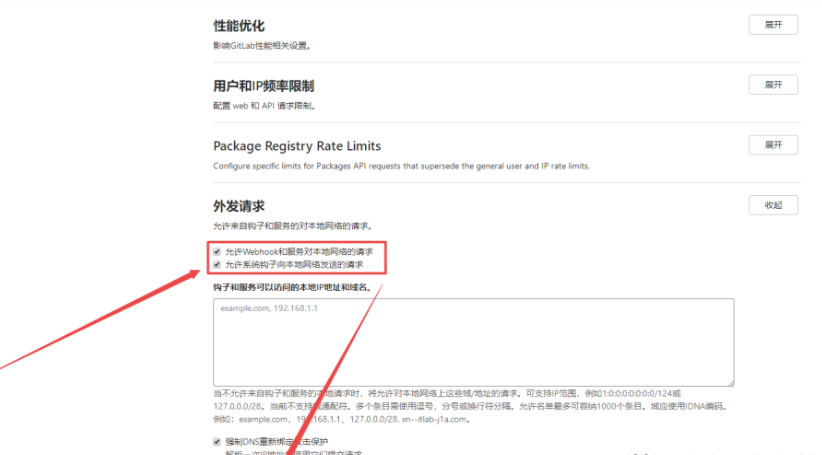 修改 GitLab 管理设置,允许本地网络请求(推荐)